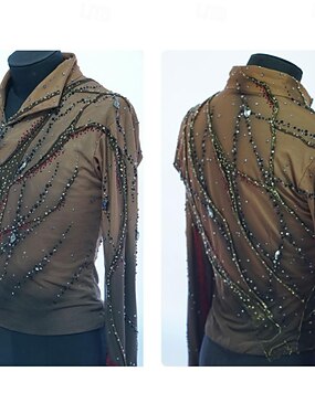 Haut de Patinage Artistique Homme Patinage Hauts Café Patchwork Élastique Entraînement Compétition Tenue de Patinage Classique cristal pailleté manche longue Patinage sur glace Patinage artistique