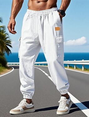 Homme Pantalons Cargo Pantalons en Lin Pantalons Pantalon d'été Pantalon de jogging Taille Élastique Cordon de serrage Uni Confort Respirant Longueur complète Extérieur Occasionnel Quotidien Vacances