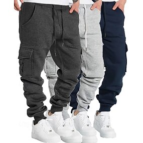 Paquets multiples 3 pièces Homme Gris foncé + gris clair + noir Joggings Pantalons Jogging Cargo Cordon de serrage Avec Poches Uni Vacances Tenue quotidienne Polyester Printemps