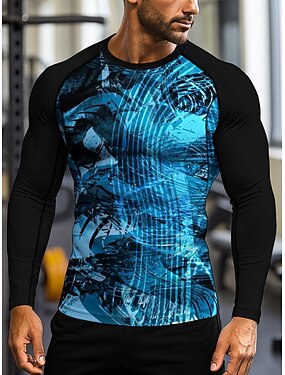 Homme Abstrait T-shirt de course T-shirt athlétique T-shirt de Gym T-shirt de Fitness Chemise d'entraînement Été Printemps Automne Hiver manche longue UPF 50 Résistant aux UV UPF 50+ Doux Évacuation