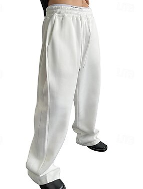 Homme Joggings Jogging à Jambes Larges Pantalons Pantalons Amples Pantalon de survêtement ouvert en bas Cordon de serrage Taille Élastique Jambe Droite Uni Évacuation de l'Humidité Respirant Longueur