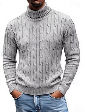 Homme Pull en maille torsadée Pull Torsadé Tricoter Hauts Réguliers Tricoté Coupe ajustée Uni Col roulé Tricots Contemporain Occasionnel Tenue quotidienne Vêtement Tenue Automne Hiver Blanche Kaki S