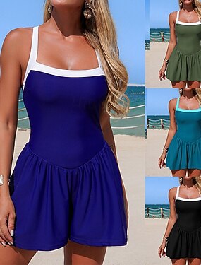 Femmes Robes de Natation Une pièce Couleur Unie Contrôle du ventre Spandex Élastique Sans manches Maillot de Bain Surf Plage Vacances Été