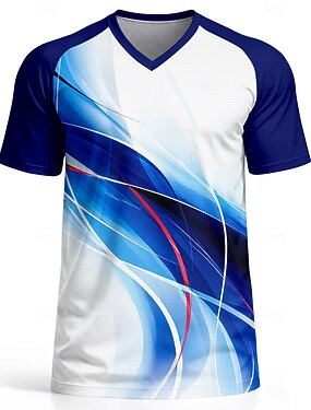 Maillot de football homme inspiré de la France, col en V, bleu, blanc et rouge, dégradé abstrait, mesh respirant, protection UFP50+