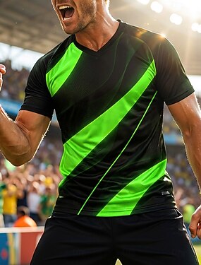 Maillot de football homme noir et vert fluo, tissu respirant en maille à séchage rapide, protection solaire UPF50+, t-shirt pour supporter de tournoi
