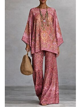 Femmes Ensembles de Pantalons Manche 3/4 Col rond Graphique Géométrique Élégant Vacances Occasionnel Quotidien Vacances Bleu Rouge Violet Été Coupe régulière