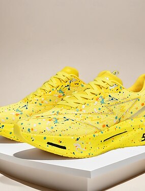 Baskets de sport jaunes pour hommes – Chaussures de course athlétiques en maille respirante pour la salle de sport, le jogging et l'entraînement en extérieur