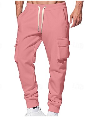 Homme Joggings Pantalons Pantalon de survêtement droit Pantalon gaufré Cordon de serrage Avec Poches Taille Élastique Uni Confort Sport en Plein Air Quotidien Mode Occasionnel Jaune Rose Claire