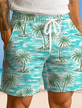 Homme Cocotier Voilier Plantes Tropicales Short gaufré Shorts de survêtement Short décontracté Taille Moyenne Hawaïen Vacances Jogging Entraînement Taille élastique avec cordon de serrage Short avec