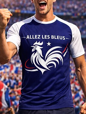 Homme France Été du football Match global Pulls hauts T-shirt de course Été Bloc de Couleur Manche Courte UPF 50 Séchage Rapide Respirant Décontracté Course Jogging Fitness Bleu Tenue de sport Tenues