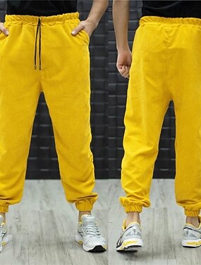 Homme Joggings Pantalon Jogger Pantalons Pantalon en velours côtelé Cordon de serrage Avec Poches Taille Élastique Uni Confort Respirant Longueur complète Extérieur Quotidien Fête Vacances Mode Noir