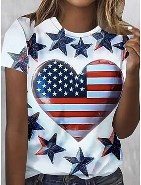 Jour de l'Indépendance Américaine Femmes T-shirt Imprimé Graphique Drapeau Élégant Classique Occasionnel Manche Courte Col ras du cou Hauts Réguliers Quotidien Sortir Week-end Blanche Été Printemps
