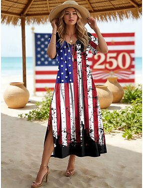 Jour de l'Indépendance Américaine Femmes Robe Midi Robe fourreau Robe d'Été Robe T-Shirt Vacances Occasionnel Fête Coupe régulière Graphique Drapeau Américain Manche Courte Col en V Bleu Rouge Ét