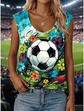 Femmes T-shirt Imprimé Graphique Équipe de football Élégant Classique Occasionnel Manche Courte Col en V Hauts Réguliers Quotidien Bleu Noir Blanche Rouge Vert Été Printemps