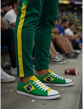 Baskets en toile verte pour homme, style football – chaussures décontractées à lacets aux couleurs du Brésil, idéales pour les jours de match, les événements sportifs, le streetwear et le quotidien.