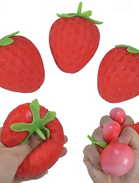 Lot de 4 jouets anti-stress pastèque et fraise à remontée lente, accessoire de relaxation sensorielle réaliste en forme de fruit, jouet doux à presser pour soulager l'anxiété &accessoire de bureau