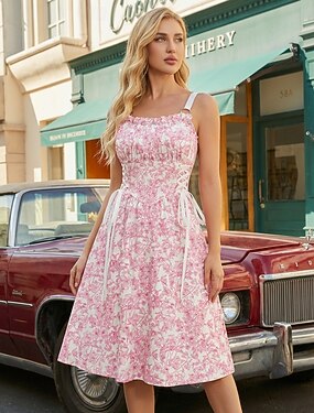 Élégant Années 1950 Midi Robe Sans manches Fleuri Ligne A Col carré Déguisement Femmes Occasionnel Soirée Tenue Quotidienne Adulte Robe Printemps & Été