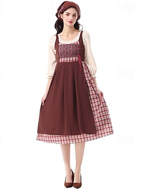 Rétro Vintage Médiéval Renaissance Robe Ensemble d'accessoires Viking Elfe Déguisement Femmes Halloween Carnaval Mascarade LARP Adulte Robe Plus d'accessoires Boucles d'oreilles
