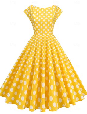 Rockabilly Midi Robe trapèze Manches courtes Pois Ajusté & Évasé Déguisement Femmes Carnaval Saint-Valentin Occasionnel Retour à la maison Soirée à thème rétro Adulte Robe Printemps