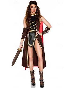 Rétro Vintage Rome antique Costume de cosplay Tenues Spartiates Déguisement Femmes Halloween Carnaval Soirée Mascarade Adultes Robe Cape
