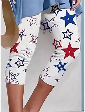 Femmes Pantalon capri Leggings Streetwear Basique Occasionnel Longueur mollet Taille hautePantsJour de l'Indépendance américaine Graphique Etoile Impression Confort Doux Confortable Élastique
