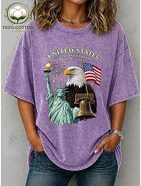 T-shirt Femme Patriote Journée de l'Indépendance Anniversaire Américain Imprimé Graphique Lettre Drapeau Américain Élégant Classique Décontracté À Manches Courtes Encolure Ronde Hauts Quotidiens Noir