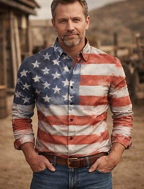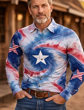 250e anniversaire des États-Unis Rétro Vintage Années 1970 Chemise Chemise Aloha Manches longues Hippie Géométrique Ethnique Déguisement Homme Mascarade 4 Juillet Soirée Jour de l'indépendance Adulte