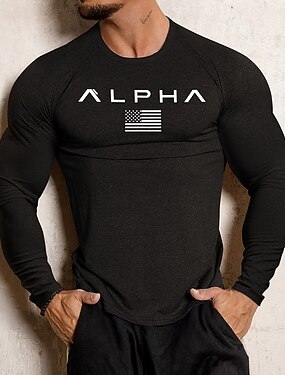 Homme 250e anniversaire de l'Amérique Jour de l'Indépendance Lettre T-shirt de course T-shirt de compression Printemps Automne manche longue Séchage Rapide Compression Évacuation de l'Humidité