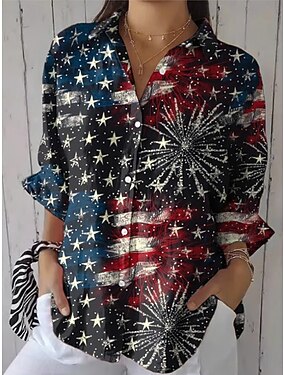 Jour de l'Indépendance Américaine Femmes Chemise Froncé Graphique Drapeau ancien Élégant manche longue Manche flottante Manche cloche Col de chemise Hauts Réguliers Quotidien Travail Fête Bleu Noir