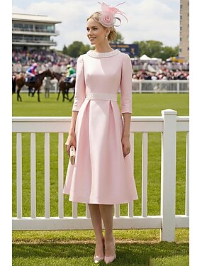 Ligne A Mi-long Robe de Soirée Robe de Cocktail Robe d'invité de mariage Robe de Mère de Mariée Demi Manches Bijoux Élégant robe demoiselle d honneur Fête de mariage Satin avec Perlage