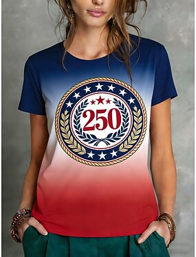 Jour de l'Indépendance Américaine Femmes T-shirt Imprimé Graphique Drapeau Élégant Classique Occasionnel Manche Courte Col ras du cou Col rond Hauts Réguliers Quotidien Bleu Rouge Rouge / Bleu Ét