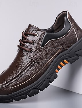 Baskets décontractées à lacets pour hommes en similicuir marron foncé, chaussures résistantes pour l'extérieur et les voyages