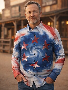 250e anniversaire des États-Unis Rétro Vintage Années 1970 Chemise Chemise Aloha Manches longues Hippie Géométrique Ethnique Déguisement Homme Mascarade 4 Juillet Soirée Jour de l'indépendance Adulte