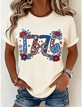Jour de l'Indépendance Américaine Femmes T-shirt Imprimé Fleuri Graphique Élégant Classique Occasionnel Manche Courte Col ras du cou Hauts Réguliers Quotidien Sortir Week-end Bleu Noir Blanche Rouge