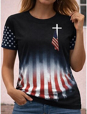 Jour de l'Indépendance Américaine Femmes T-shirt Imprimé Graphique Drapeau Élégant Classique Occasionnel Manche Courte Col ras du cou Hauts Réguliers Quotidien Bleu Noir Blanche Rouge Été Printemps