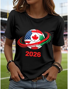 Femmes T-shirt Imprimé Graphique Équipe de football Élégant Classique Occasionnel Manche Courte Col ras du cou Hauts Réguliers Quotidien Bleu Noir Blanche Rouge Été Printemps
