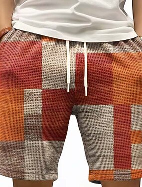 Homme Géométrique Bloc de Couleur Patchwork Short gaufré Shorts de survêtement Short décontracté Taille Moyenne Mode Décontractée Vacances Jogging Entraînement Texturé Taille élastique avec cordon de