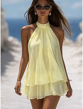 Femmes Mini Robe Robe trapèze Robe à Volants Robe dos nu Occasionnel Extérieur Sortir Coupe Slim Couleur Unie Sans manches Col Halter Jaune Été Printemps