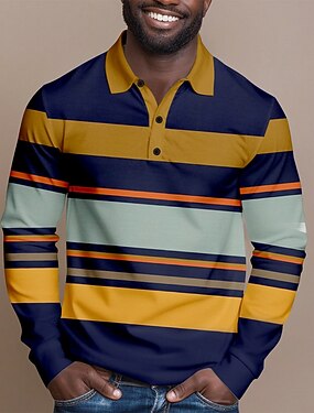 Homme Rayures Polo Polos de Rugby manche longue Polos Chemises à Col Occasionnel Extérieur Athleisure Impression 3D Printemps Automne Jaune