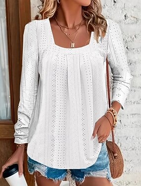 Femmes T-shirt Haut à œillets Rayé Mode Classique Occasionnel manche longue Col carré Hauts Réguliers Quotidien Sortir Week-end Blanche Jaune Bleu Ciel Rose rouge Été Printemps