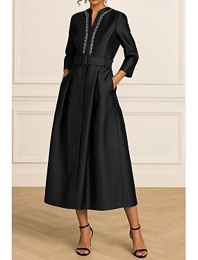 Ligne A Longueur thé Robes de Cocktail Élégant Quotidien Manche 3/4 Col en V Fête de jardin Mariage Satin Satin Extensible avec Cristaux