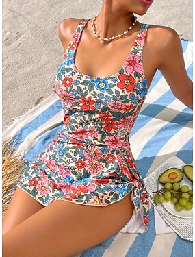 Femmes Maillots de Bain Tankini Jupe Maillot de bain Cordon de serrage Tricot Élégant Vacances Fleuri Graphique Col en U Sans manches Maillots de bain