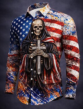 Homme Crâne 4 juillet, 250e anniversaire des États-Unis Croix Chemise Chemise Boutonnée manche longue Vintage Rétro Fête Décontracté Quotidien Printemps Automne Col Rabattu Impression 3D chemises