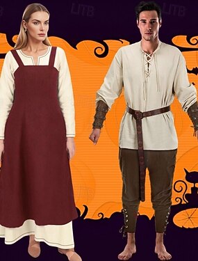 couples rétro vintage médiéval renaissance tenues halloween groupe couples costumes cheville longueur viking valhalla hommes femmes pour halloween larp ren faire