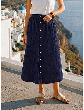 Femmes Jupe de vacances Élégant Mode Maxi Taille Moyenne Jupes Non Elastique Bleu marine Noir Blanche Vert Été