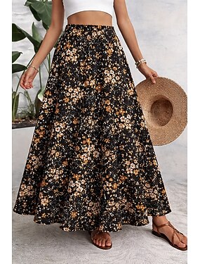 Femmes Jupe de vacances Élégant Mode Occasionnel Maxi Taille haute Jupes Fleuri Graphique Avec Poches Imprimé Micro-Élastique Quotidien Plage Bleu Noir Rose Claire Vert Été 95 % polyester, 5