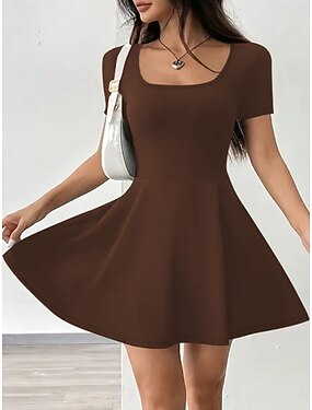 Femmes Ensembles deux pièces Jupe Ensembles Manche Courte Col carré Uni Mode Streetwear Occasionnel Quotidien Extérieur Noir Marron Gris Été Mince