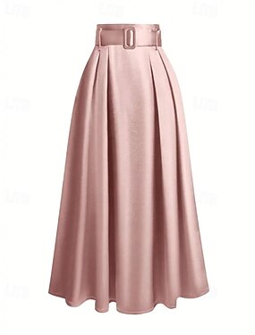 Femmes Jupes en satin Mode Maxi Taille haute Jupes Uni Plissé Micro-Élastique Quotidien Date Vin Noir Rose Claire Vert foncé Printemps Soie comme le satin Polyester