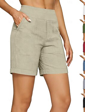Femmes Bermuda Vacances Basique Court Taille Moyenne Non Elastique Quotidien Maison Bleu Rouge bordeaux Noir Blanche Été Printemps