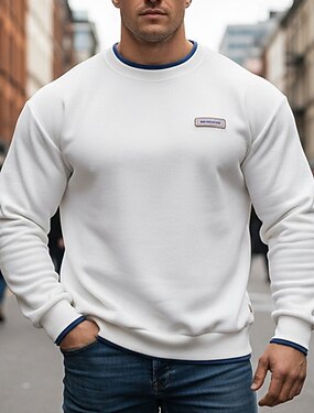 Homme Sweat-shirt Sweat-shirt en polaire Bleu Noir Blanche Col ras du cou Uni Patchwork Sport & Loisir Quotidien Fête Polyester Streetwear Basique Occasionnel Automne Hiver Vêtement Tenue Pulls